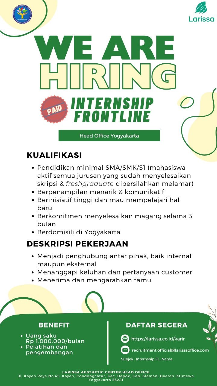 Persyaratan : Silahkan mengirimkan surat lamaran sesuai posisi yang dituju ke: Email : [email protected] CP : 089506278954