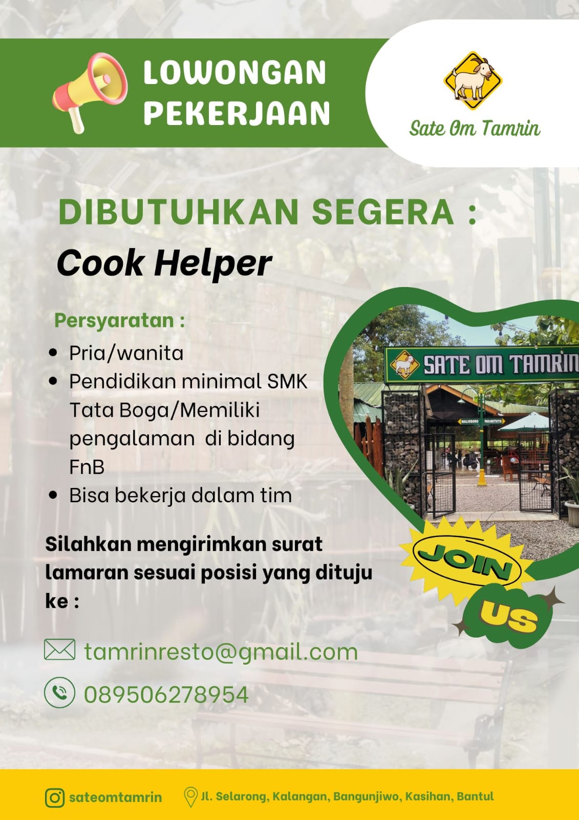 - Pendidikan Minimal SMK Tata Boga/Memiliki pengalaman di bidang FnB