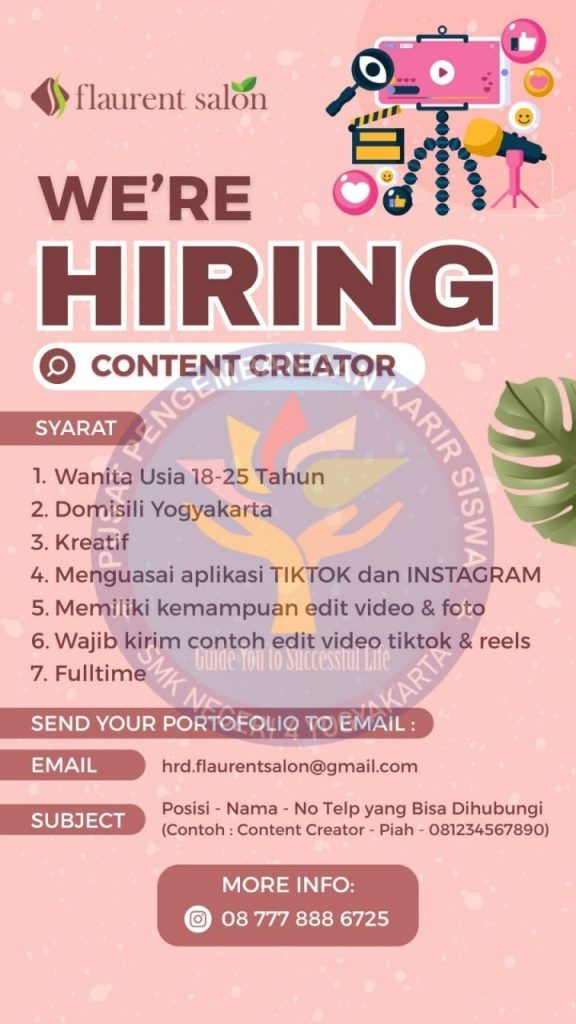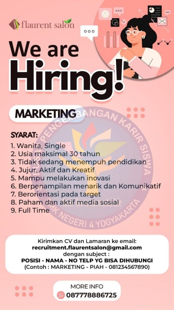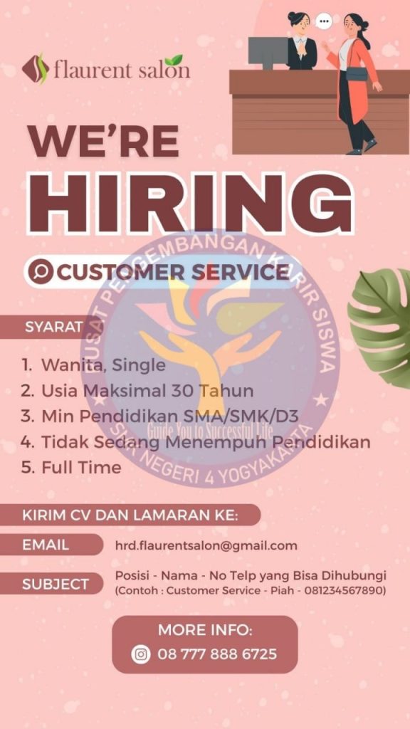 OPEN POSITION CUSTOMER SERVICE, CONTENT CREATOR, MARKETING, TERAPIS & CLEANING SERVICE || FLAURENT SALON
