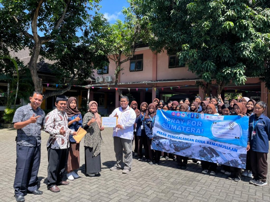 SMK Negeri 4 Yogyakarta melakukan kegiatan donasi peduli banjir yang sedang melanda saudara kita di Sumatera melalui Lazizmu Umbulharjo. Kegiatan ini didukung oleh seluruh siswa-siswi yang ada di SMK Negeri 4 Yogyakarta serta bapak/ibu guru dan karyawan. Donasi peduli banjir Sumatera dibuka sejak hari Senin, 8 Desember 2025 dan ditutup dihari Jumat, 12 Desember 2025 yang kemudian langsung diserahkan oleh Ibu Kepada Sekolah Nurlatifah Hidayati, M.Hum beserta perwakilan siswa siswi kepada Lazizmu Umbulharjo. Penyerahan donasi peduli banjir Sumatera dilakukan dihalaman SMK Negeri 4 Yogyakarta setelah pelaksanaan kegiatan classmetting yang dilakukan oleh siswa-siswi SMK Negeri 4 Yogyakarta. Kegiatan donasi peduli banjir Sumatera diharapkan mampu menumbuhkan rasa solidaritas dan kepedulian terhadap sesama serta bisa meringankan beban ekonomi bagi korban banjir, tentunya proses pemulihan pasca banjir Sumatera sangat membutuhkan uluran tangan kita. Donasi dilakukan oleh siswa dengan cara berkeliling di seluruh kelas-kelas dan kantor guru/karyawan, kemudian siswa-siswi menghitung hasil donasi dan diserahkan ke pihak Lazizmu Umbulharjo untuk disalurkan kepada saudara kita di Sumatera. Semoga saudara kita yang ada di Sumatera segera bisa pulih kembali.