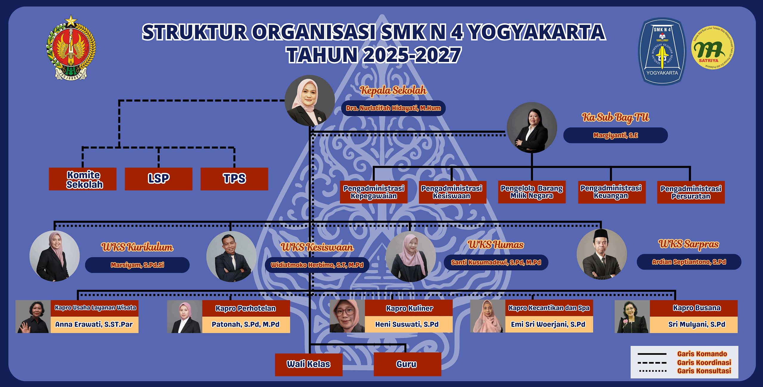 Struktur Organisasi SMK Negeri 4 Yogyakarta Struktur Organisasi Kenali para guru dan tenaga kependidikan SMKN 4 Yogyakarta Dra. Nurlatifah Hiidayati, M.Hum Kepala Sekolah Marsiyam, S.Pd. Si WKS Kurikulum Widiatmoko Herbimo, S.T., M.Pd WKS Kesiswaan Ardian Septiantono, S.Pd WKS Sapras Santi Kusuma Dewi, S.Pd WKS Sapras
